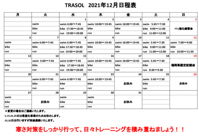TRASOL12月スケジュール