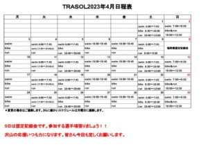 2023年度TRASOL日程表4月